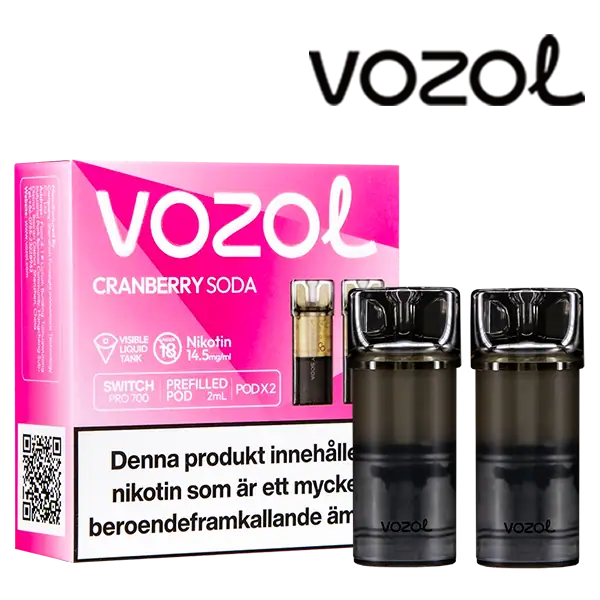 Cranberry Soda är speciellt designade för att passa VOZOL serien av podsystem. De förfyllda poddarna är tillverkade av plast och höljet av poddarna är svarta. Poddarna från VOZOL är förfyllda poddar med 2 ml e-juice som man sätter i sin batterienhet. När podden tar slut så kan du byta pod i din batterienhet. Poddarna ska sorteras som elektronisk utrustning på en avfallsanläggning efter användning.