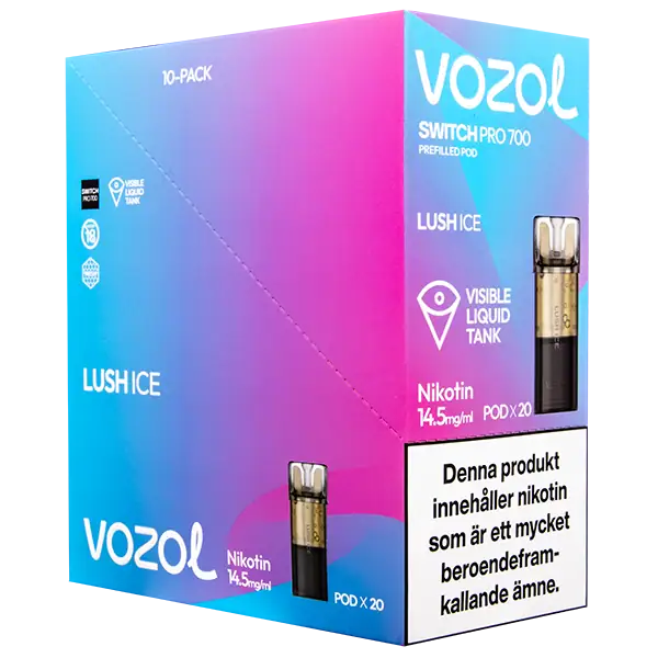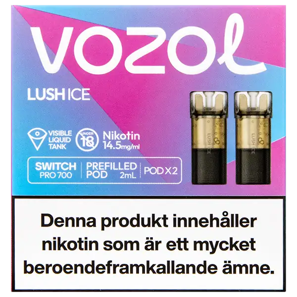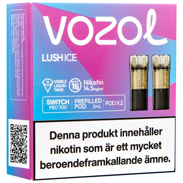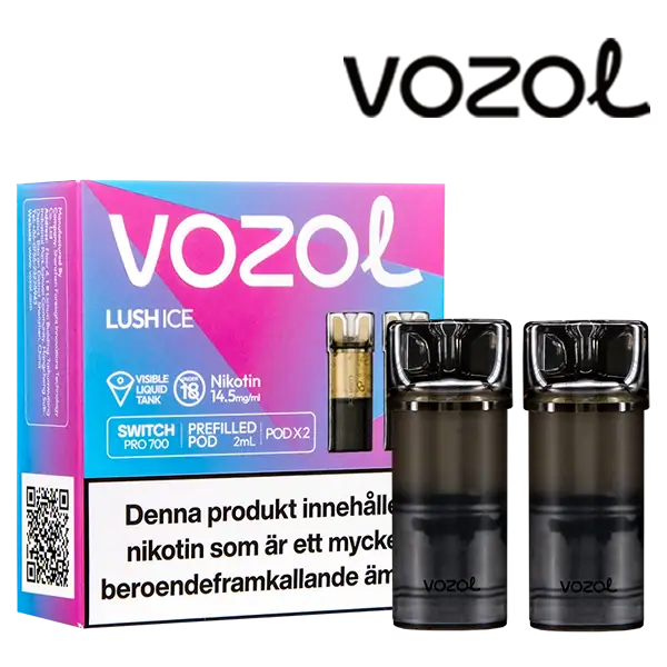Lush Ice är speciellt designade för att passa VOZOL serien av podsystem. De förfyllda poddarna är tillverkade av plast och höljet av poddarna är svarta. Poddarna från VOZOL är förfyllda poddar med 2 ml e-juice som man sätter i sin batterienhet. När podden tar slut så kan du byta pod i din batterienhet. Poddarna ska sorteras som elektronisk utrustning på en avfallsanläggning efter användning.