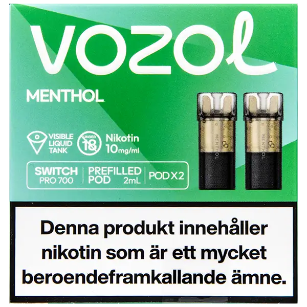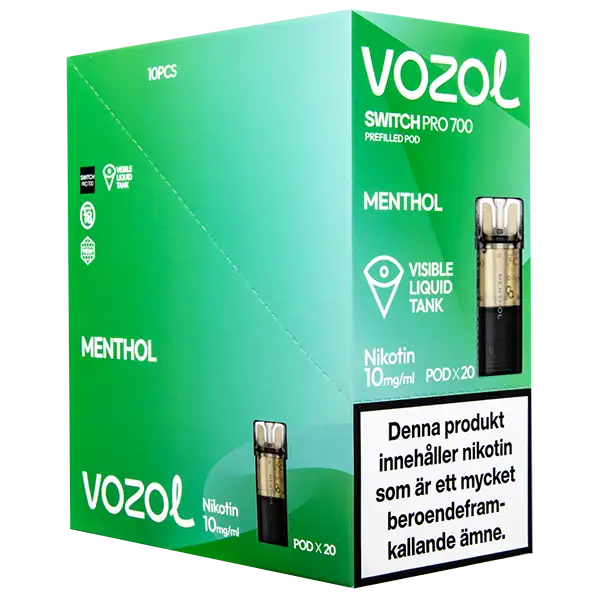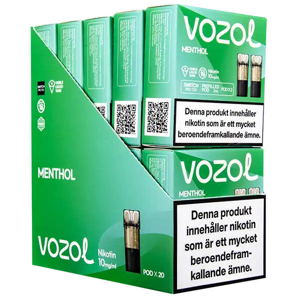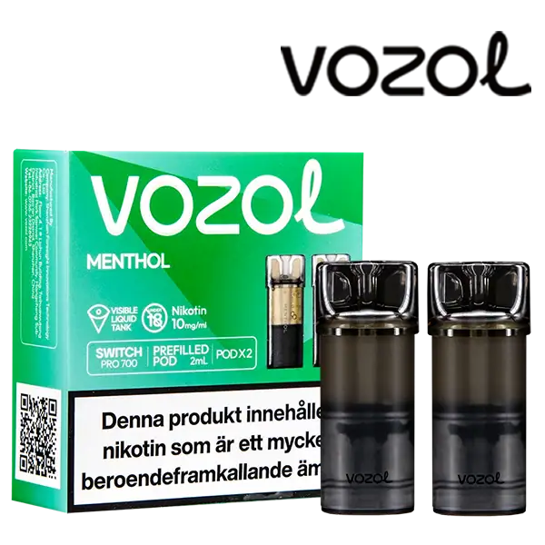 Menthol är speciellt designade för att passa VOZOL serien av podsystem. De förfyllda poddarna är tillverkade av plast och höljet av poddarna är svarta. Poddarna från VOZOL är förfyllda poddar med 2 ml e-juice som man sätter i sin batterienhet. När podden tar slut så kan du byta pod i din batterienhet. Poddarna ska sorteras som elektronisk utrustning på en avfallsanläggning efter användning.