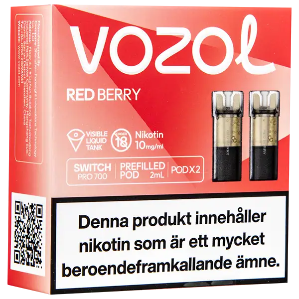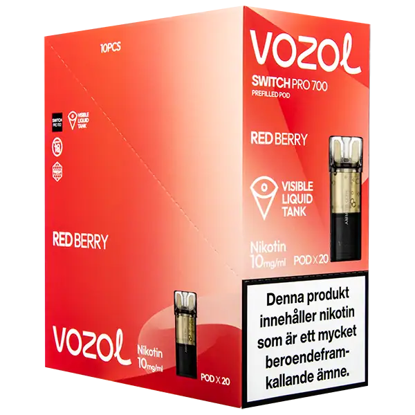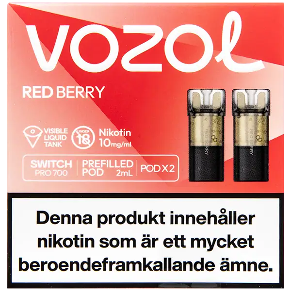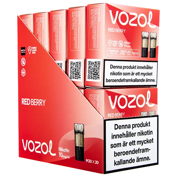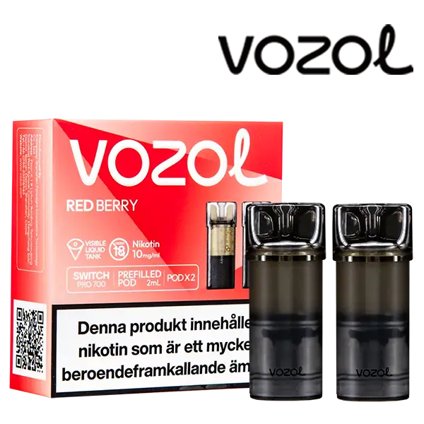 Red Berry är speciellt designade för att passa VOZOL serien av podsystem. De förfyllda poddarna är tillverkade av plast och höljet av poddarna är svarta. Poddarna från VOZOL är förfyllda poddar med 2 ml e-juice som man sätter i sin batterienhet. När podden tar slut så kan du byta pod i din batterienhet. Poddarna ska sorteras som elektronisk utrustning på en avfallsanläggning efter användning.