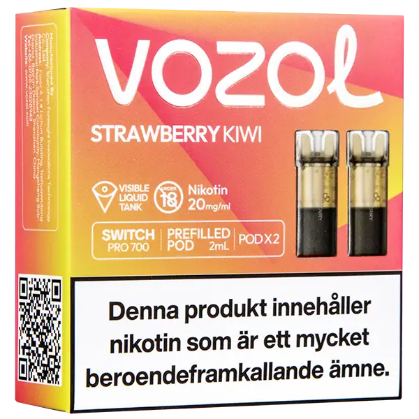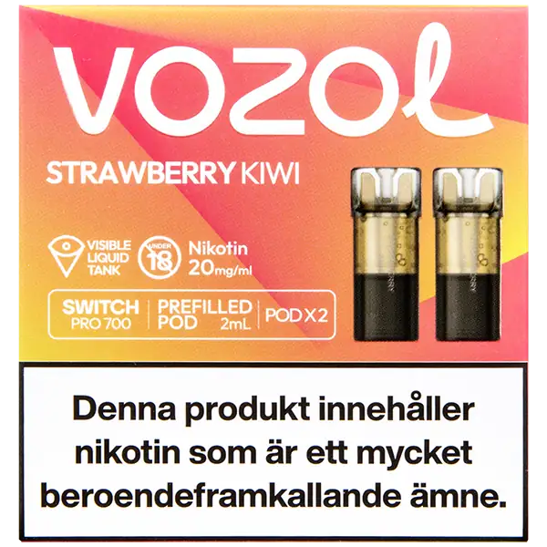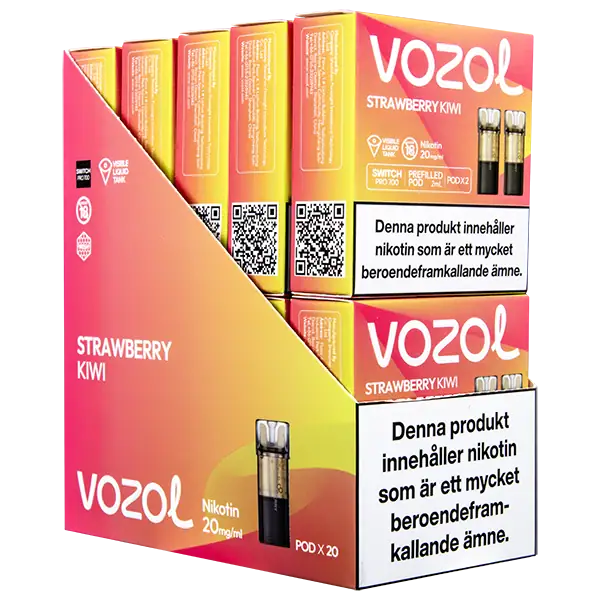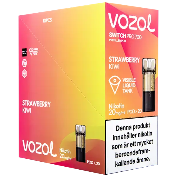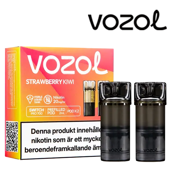 Strawberry Kiwi är speciellt designade för att passa VOZOL serien av podsystem. De förfyllda poddarna är tillverkade av plast och höljet av poddarna är svarta. Poddarna från VOZOL är förfyllda poddar med 2 ml e-juice som man sätter i sin batterienhet. När podden tar slut så kan du byta pod i din batterienhet. Poddarna ska sorteras som elektronisk utrustning på en avfallsanläggning efter användning.