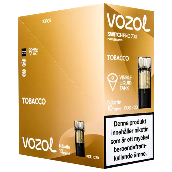 VOZOL Pod Tobacco 10 mg är en förfylld podd med nikotin som kommer påfylld med 2 ml e-juice per pod. VOZOL Pod Tobacco har smakämnen av tobak, dessutom ger dessa poddar upp till hela 700 puffar per pod. VOZOL Pod Tobacco 10 mg innehåller 10 mg/ml.