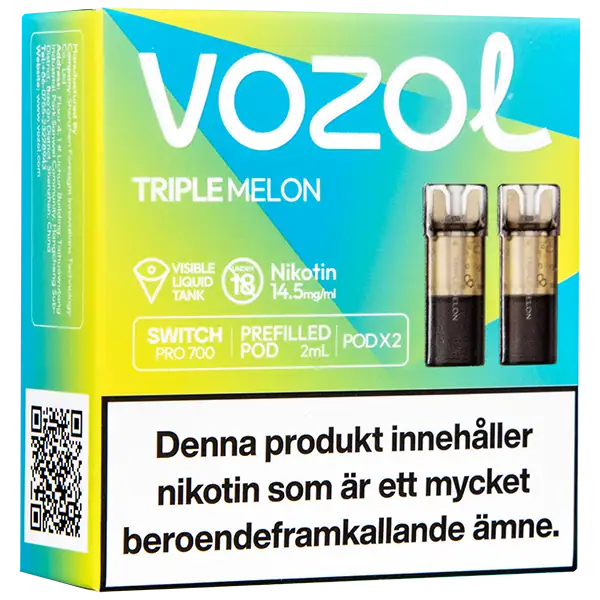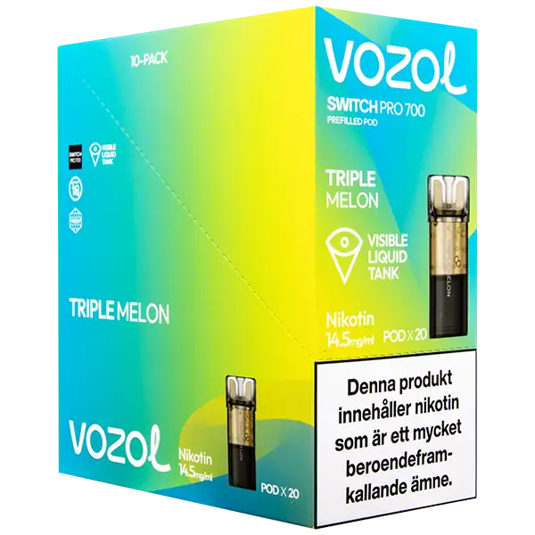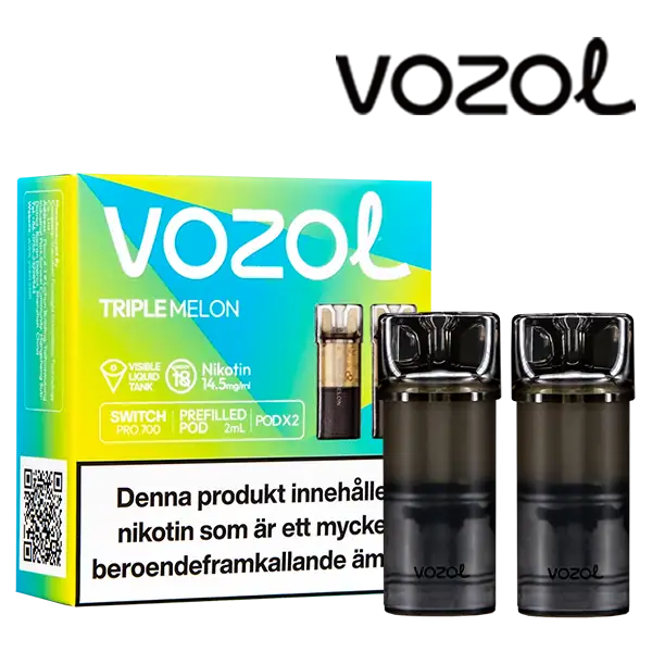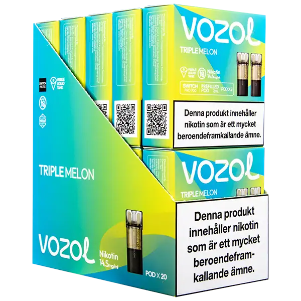 Triple Melon är speciellt designade för att passa VOZOL serien av podsystem. De förfyllda poddarna är tillverkade av plast och höljet av poddarna är svarta. Poddarna från VOZOL är förfyllda poddar med 2 ml e-juice som man sätter i sin batterienhet. När podden tar slut så kan du byta pod i din batterienhet. Poddarna ska sorteras som elektronisk utrustning på en avfallsanläggning efter användning.