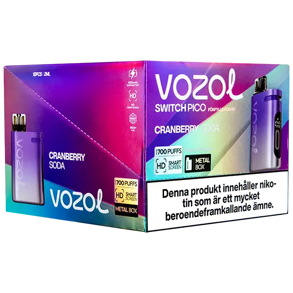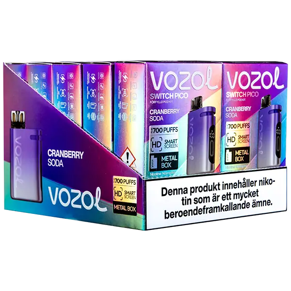 Poden leverar rikligt med ånga samt en tydlig och en lätt kylande smak av tranbärs läsk. VOZOL Switch PICO Podkit förfyllda poddar ger upp till 700 puffar.