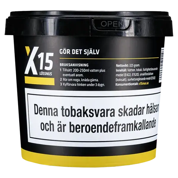 - Nettovikt: 325 gram av X-15 Express Lössnus.